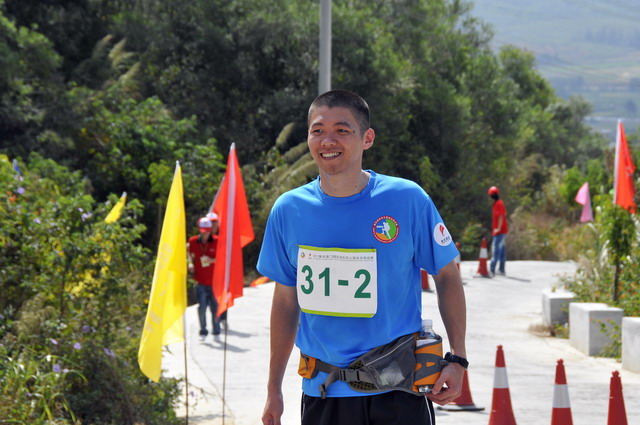 賀曉娟在行進(jìn)中,遇到位第一次來大陸參加百公里縱走賽的臺(tái)灣同胞。這是個(gè)樂觀的人,很有激情,跑一段還會(huì)抒發(fā)下情感,甚至唱起了歌兒。在他前后跑著的人,都深受感染,雖然沒有跟著和歌,但這份精神的帶動(dòng),也讓他們跑得更起勁了。