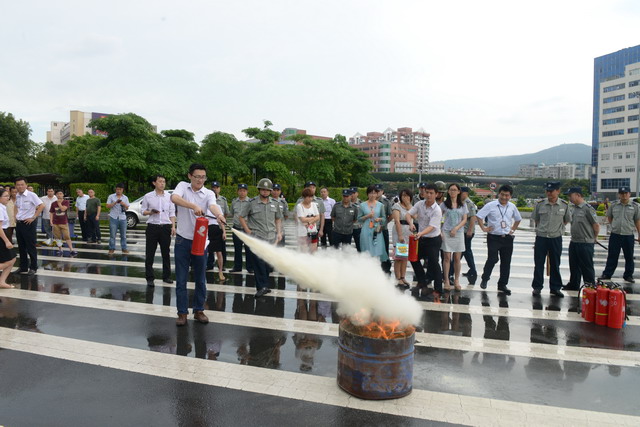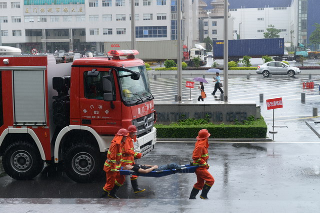 為了提高廈門國(guó)際航運(yùn)中心全員的應(yīng)急應(yīng)變能力,以全國(guó)第十三個(gè)“安全生產(chǎn)月”為契機(jī),6月19日下午,2014年象嶼保稅區(qū)應(yīng)急綜合聯(lián)動(dòng)演練在此成功舉辦。此次演練由象嶼保稅區(qū)管委會(huì)安監(jiān)局主辦,象嶼集團(tuán)、象嶼高尚物業(yè)承辦,湖里派出所、湖里消防八中隊(duì)、象嶼集團(tuán)員工代表、高尚物業(yè)公司全體員工及航運(yùn)中心租戶代表逾百人參加了此次演練。