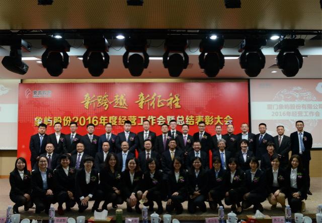 1月16日,象嶼股份2016年度經(jīng)營工作會暨年度總結(jié)表彰大會在廈門國際航運中心隆重召開。會議由股份公司鄧啟東總經(jīng)理主持,象嶼集團董事長張水利、副總裁陳方、黨委副書記邵薀默等領導蒞會,象嶼股份經(jīng)營班子、旗下各投資企業(yè)高管及員工代表130余人參加了會議。