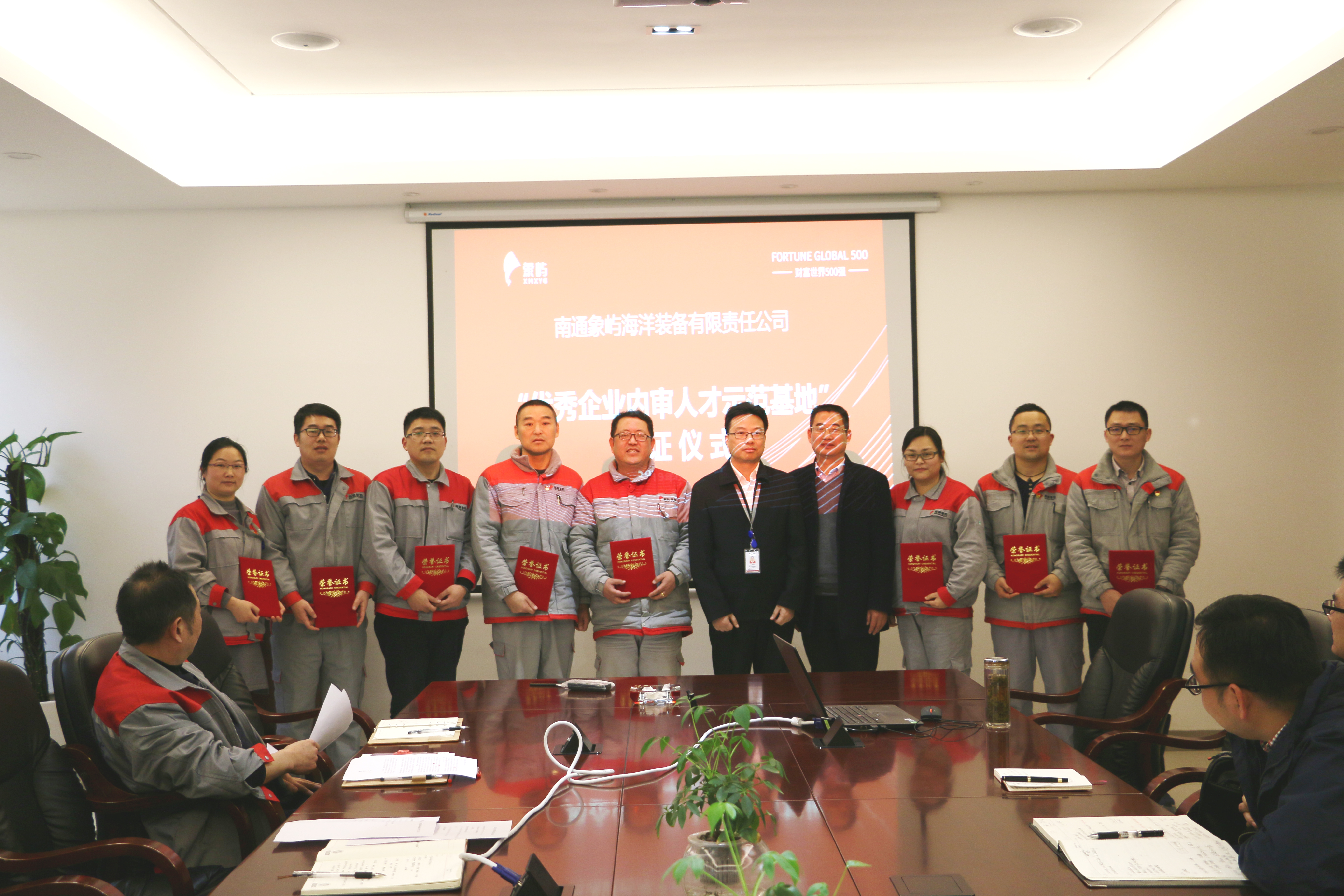 本次授牌儀式在象嶼海裝二樓會(huì)議室舉行,各部門負(fù)責(zé)人以及最新獲得內(nèi)審員資格證書(shū)的代表參加了該儀式。象嶼海裝常務(wù)副總秦偉民接受了CCS南京公司業(yè)務(wù)總監(jiān)王慶余頒發(fā)的“優(yōu)秀企業(yè)內(nèi)審人才示范基地”牌匾。