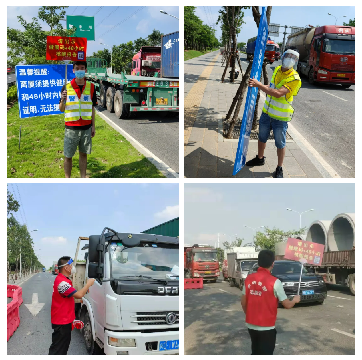 在海滄海翔大道東埔村,遠(yuǎn)遠(yuǎn)就能看到象嶼股份志愿者手持指引牌,“請出示健康碼+48小時核酸報告”,他們正在開展交通防控協(xié)管工作。他們在路口一站就是8小時,凌晨24點(diǎn)到早上8點(diǎn)的夜班更是對志愿者們體力與毅力的考驗(yàn)。